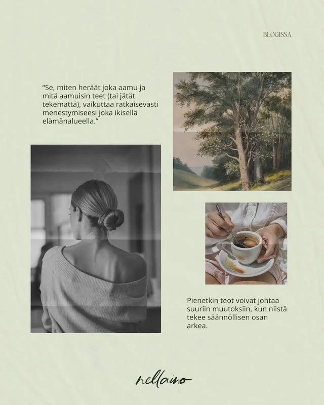 Itse ainakin huomaan ison eron omassa energiatasossani, jos olen jättänyt aamusta sellaisia asioita pois, jotka aidosti vaikuttavat sekä mun mielen että kehon hyvinvointiin.